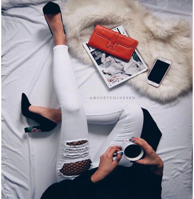 Japon Style Kot Pantolon Beyaz Fileli | Moda