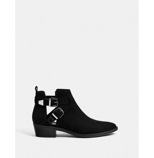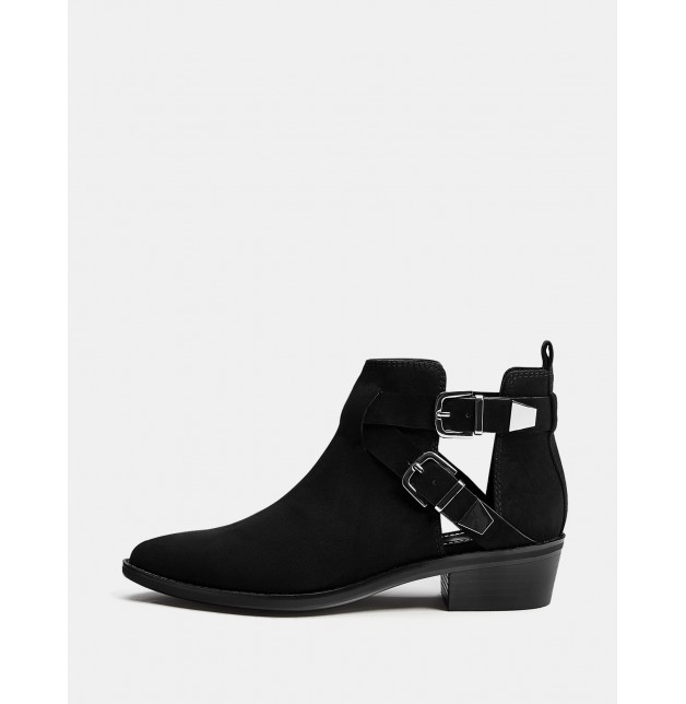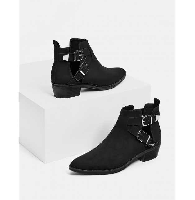 Boşluk detaylı tokalı siyah kısa bot | Moda