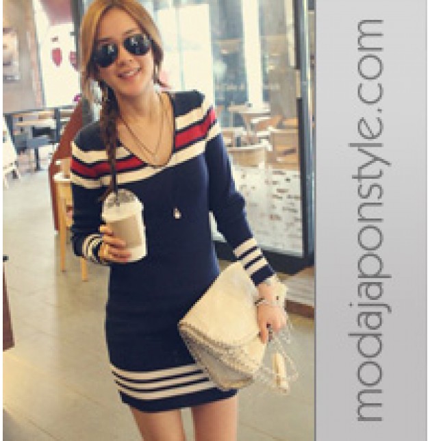 Japon Giyim Elbise Çizgili | Moda