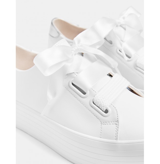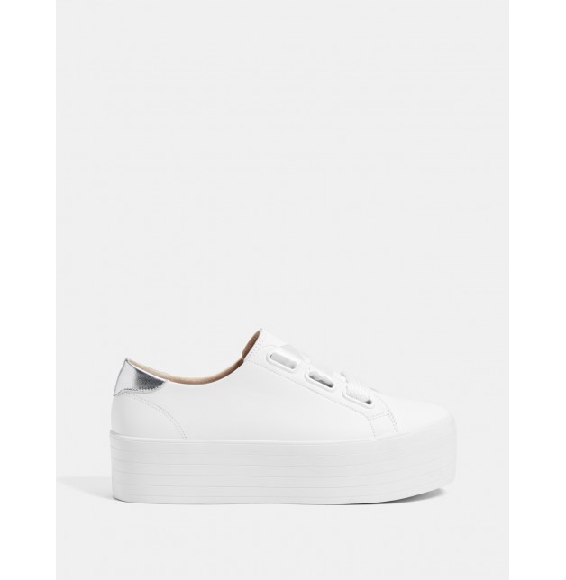 Düz beyaz platform spor ayakkabı