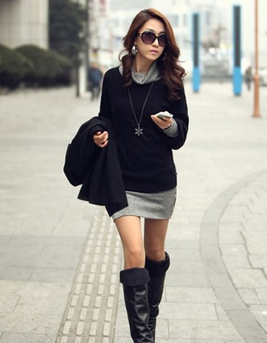 Japon Giyim Style Gri Siyah Zımbalı Elbise Tunik | Moda
