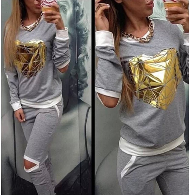 Japon Style Gri Altın Eşofman Takımı | Moda