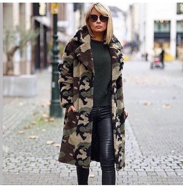 Japon Stype Kamuflaj Kalın Polar Kaban | Moda